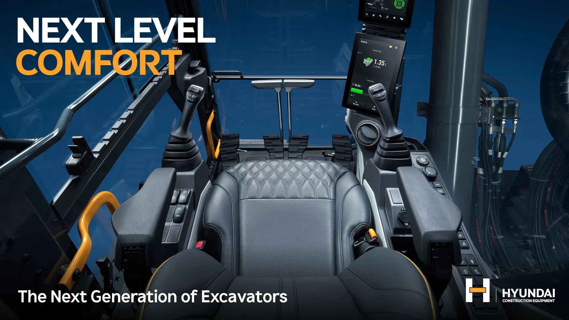 Optimiertes Raumkonzept mit Premium-Sitz, leiserer Umgebung, zwei Full-HD 12,8 Zoll Touchscreens mit Schnellzugriff auf Maschinenparameter und Klimaautomatik. Die bequeme Joystick-Lenkung links und rechts (bei beiden Maschinen serienmässig) ermöglicht de Fahrbetrieb in alle 4 Richtungen (vorwärts, rückwärts, links, rechts).