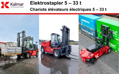 Kalmar Elektrostapler von 5 bis 33 Tonnen stehen für elektrische Power im Schwerlastbereich. Ob Lager, Industrie oder Containerumschlag in der Schweiz, die robusten Elektro Gabelstapler kombinieren Leistung, Effizienz und Sicherheit. Emissionsfrei, leise und wartungsarm bieten sie eine nachhaltige Alternative zu Dieselstaplern für anspruchsvolle Anwendungen.